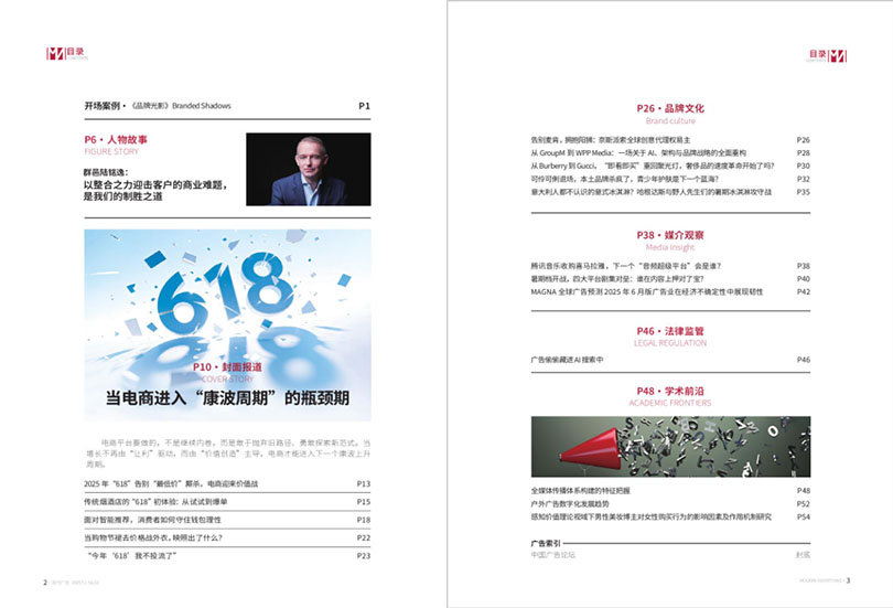 已经是中国广告行业具有影响力和性的专业杂志,随时针对行业发展中所产生的问题和困惑,及时发表意见和建议并邀请行业专家共同讨论,找出解决问题的方法和途径。同时每年还在组织评选“中国年度的广告人,广告主和媒体广告人的活动”,通过对人的梳理掌握行业发展的脉动。通过这些内容了解中国广告行业发展的新动态。